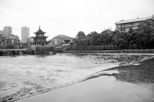 7月4日深夜,贵阳市遭遇暴雨袭击,南明河水位上涨。贵州省防汛抗旱指挥部启动洪涝灾害四级预警。 新华社发(章静 摄)