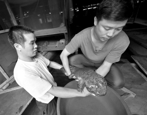 ↑7月5日,在广西金秀瑶族自治县广西金秀九甲特种水产养殖场,工作人员在查看一尾6龄娃娃鱼身体状况。为挽救娃娃鱼这一珍稀动物,从1999年起,广西金秀瑶族自治县从外地引进娃娃鱼研究保护项目,通过人工繁养的方式,使原有的120尾娃娃鱼繁殖到现在的4000多尾。娃娃鱼学名大鲵,属国家二级保护动物。 新华社记者 周华 摄