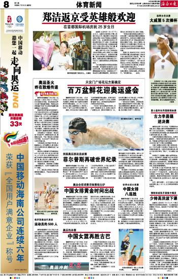 海南日报 体育新闻 008 2008-07-061 2008年07月06日 星期日