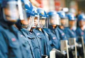 | 7月5日,防暴警察在八国峰会会场周边警戒。