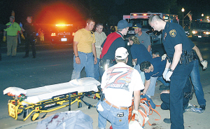 7月4日,在美国艾奥瓦州北部的查尔斯市,一名在观看焰火表演时被烟花弹炸伤的观众接受紧急救治。据美国媒体7月5日报道,查尔斯市在4日举行独立日焰火表演时,一枚烟花弹在人群附近爆炸,造成37人受伤。 新华社/美联