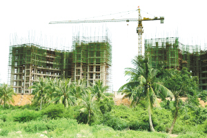 | 陵水香水湾,随处可见高楼拔地而起。 本报记者 王凯 摄 |