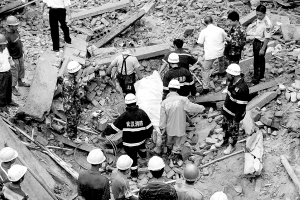 7月6日6时许,武汉市东西湖区在建民房倒塌现场又挖出一具遗体。至此,该事故死亡人数已升至8人。警方正追捕“包工头”,事故原因尚在进一步调查中。 新华社记者 熊金超 摄