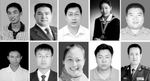 7月8日,由团中央、中国青年志愿者协会主办的第七届“中国十大杰出志愿者”在北京揭晓。这是获得“中国十大杰出志愿者”称号的陈岩、陈光标、韩伟、袁日涉、赵广军(上排从左至右);尹春龙、徐本禹、孙雅艳、郭昊东、夏米力·夏克尔(下排从左至右)。 新华社发