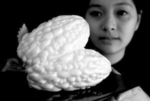 本月初,一位“故宫晶华”餐饮中心的员工在展示采用苹果苦瓜为原料制作的类似清代藏品白玉锦荔枝的菜肴———“白玉锦荔枝”。 位于台北故宫博物院院内、由晶华国际酒店集团经营管理的“故宫晶华”餐饮中心在今年6月正式推出“故宫国宝宴”,该餐饮中心的厨师们精心制作出与台北故宫博物院珍藏品紧密结合的九道精美菜肴,包括“翠玉白菜”“肉型石”“白玉锦荔枝”等,希望消费者在参观完台北故宫博物院后,能在此餐厅品尝这些堪称艺术品的菜肴,展现中华美食的博大精深。 新华社记者 陈建力 摄