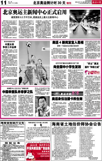 海南日报 北京奥运倒计时30天 特刊 011 2008-07-091 2008年07月09日 星期三