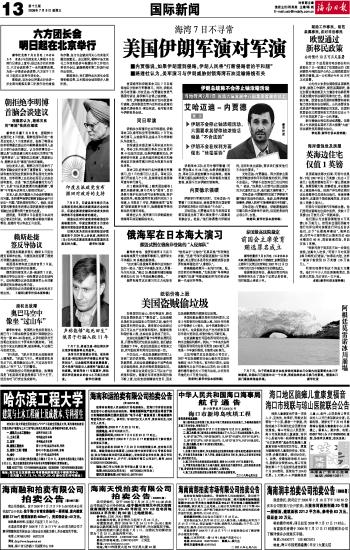 海南日报 国际新闻 013 2008-07-091 2008年07月09日 星期三