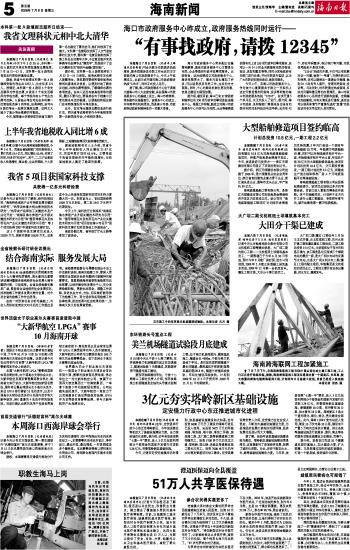 海南日报 海南新闻 005 2008-07-091 2008年07月09日 星期三