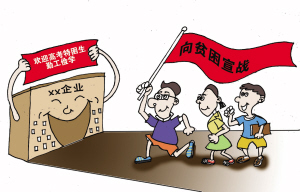漫画 新闻 为了帮助贫困高考生顺利求学,共青团三亚市委组织了多家企业,采取勤工俭学和爱心资助相结合的方式,于近日启动了“向贫困宣战”资助高考特困生计划,让贫困学子既能得到帮助又能得到锻炼。 (记者王勇)
