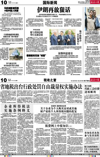 海南日报 国际新闻 010 2008-07-141 2008年07月14日 星期一