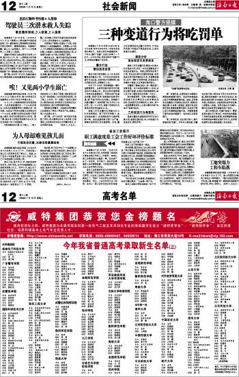海南日报 社会新闻 012 2008-07-151 2008年07月15日 星期二