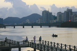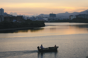 三亚河畔有着迷人的景色,尤其是落日余晖映红河面时,两岸风光如一幅秀丽的中国山水画,人在画中行,舟在波中荡,三亚人的生活,因此而多了一种诗情画意。 通讯员 南天 摄