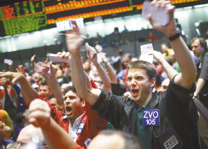| 7月16日,交易员杰伊·安泽维诺在美国芝加哥的商品交易所竞价交易。