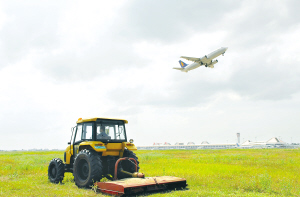 今年入夏以来,海南雨水较往年增多,湿度大,使海口美兰机场跑道周边的各种草类快速生长。为保持机场的整体视觉效果,保证航班安全顺畅运行,机场场务队采取昼夜轮班的办法,不间断地割除场内生长快速的杂草。 通讯员 潘华清 蓝祖源 摄