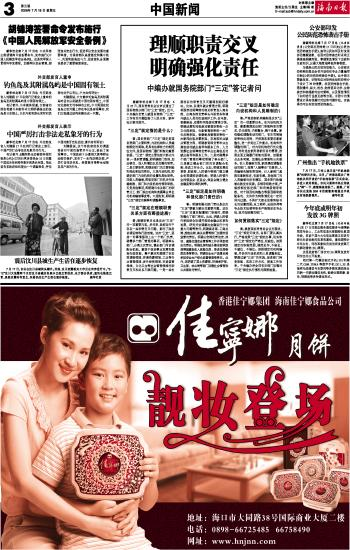 海南日报 中国新闻 003 2008-07-181 2008年07月18日 星期五