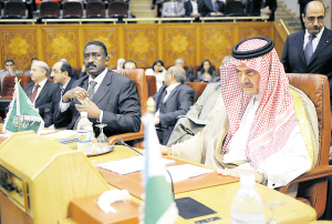 | 7月19日,苏丹外交事务国务部长萨马尼与沙特外交大臣费萨尔(右)出席阿拉伯国家联盟(阿盟)外长紧急会议,就国际刑事法院检察官针对苏丹总统巴希尔提出的战争罪行指控进行商讨,以协调阿拉伯国家的立场。 新华社记者 张宁摄 |