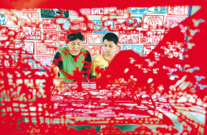 7月20日,乐东黎族自治县大安镇10岁的黎族学生吉李安(右)在他妈妈的指导下,正在制作一幅剪纸习作。大安镇有着“中国民间艺术之乡(民间剪纸)”的称号,当地很多孩子都选择学习家乡的民间艺术———剪纸来度过一个有意义的暑期生活。 本报记者 宋国强 摄