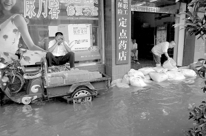 7月20日,湖北省襄樊市遭暴雨袭击,城区多处低洼地段出现内涝,给市民出行带来不便。 新华社发(王虎 摄)