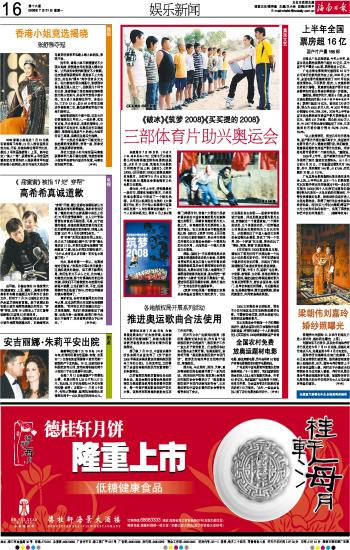 海南日报 娱乐新闻 016 2008-07-211 2008年07月21日 星期一