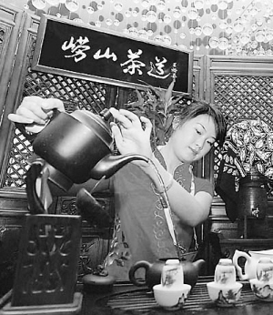 | 7月20日,青岛奥运村预开村。图为奥运村里的茶道表演。 周昆 摄 |