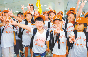 7月21日下午,代表我省参加“2008年‘诗威德杯’中国香港少年儿童钢琴大赛”总决赛的30名小琴童,在海口美兰机场登机赴港。他们本月22日至24日将在香港国际贸易中心,与来自东南亚和中国内地30多个省市的近千名小琴童,进行共10个级别和组别的总决赛角逐。 本报记者 古月 摄