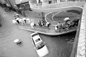 7月22日,湖北襄樊遭遇罕见强降雨,襄樊市长征路天桥下积水严重。强降雨造成襄樊市区多处地段严重积水,南渠多处发生险情。 新华社发