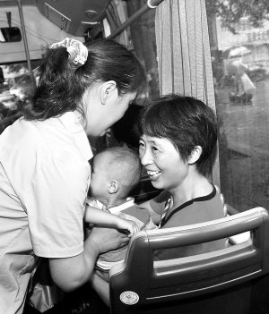 7月22日,在宜昌街头的一辆公交车上,一名乘客为一位带孩子的妇女让座。当日,湖北省宜昌市“公交让座日”活动正式启动。宜昌市将每月22日定为“公交让座日”,倡导文明乘车、礼让座位。新华社发
