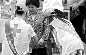 | 海口中学生在周末积极参与省红十字会开展的募捐活动,为四川地震灾区作贡献。
