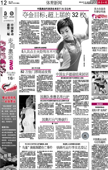 海南日报 体育新闻 012 2008-07-231 2008年07月23日 星期三