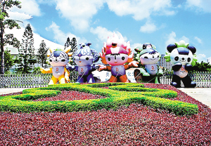 北京奥运会开幕在即,可爱的福娃“站”上了三亚街头,营造了浓郁的喜迎奥运氛围。 陈文 摄