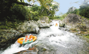 | 五指山市将旅游产业作为新的支柱产业重点培育。图为橡皮艇载着漂流者,在五指山热带雨林峡谷中激流勇进。本报记者 苏晓杰 摄 |