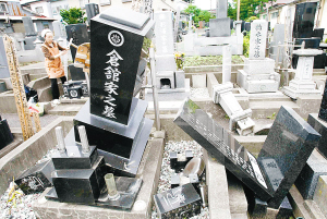 | 7月24日,在日本青森县八户市,一名妇女在一个墓地里整理被地震破坏的墓碑。