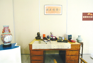 姚雪垠的“书房”,给人印象直接的就是充满着浓浓墨香。姚老给自己的书房起名“无止境斋”,意为“学无止境,工作无止境,追求无止境”。在“书房”正中,一张宽大的米黄色书桌,再现了姚老当年伏案写作的场景。