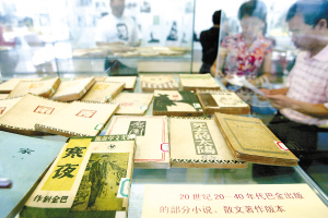 | 巴金的部分作品摆放在省博物馆1号展厅内。