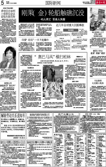 海南日报 国际新闻 005 2008-07-261 2008年07月26日 星期六