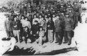| 1971年1月,叶剑英元帅(前排坐者)来西岛视察时,与“八姐妹炮班”及干部战士合影。 |
