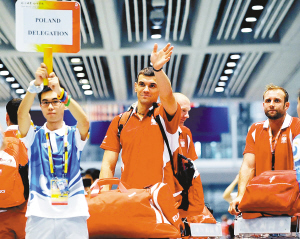 波兰代表团此次抵京的是42人的先头部队,他们乘坐的LO091次航班抵达机场。仅过了一个多小时,穿着醒目的红色运动服的波兰代表团成员就出现在接机出口处。作为奥运大家庭的成员,波兰队从下飞机之后,在依次经过检验检疫、海关边检等通关环节时都是走专用的“奥运绿色通道”,明显节省了通关时间。