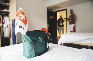 | → 瑞士代表团的一位成员展示自己的房间。 |