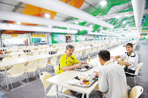 | ← 几名客人在奥运村餐厅内就餐。 |