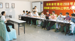 本报海口7月27日讯 (记者陈岚桦)今天,中国(海南)改革发展研究院5号楼,迎来了省内外46名研究生,海南省农村信用社招聘面试在这里紧张有序地展开。