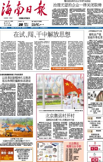 海南日报 头版 001 2008-07-281 2008年07月28日 星期一