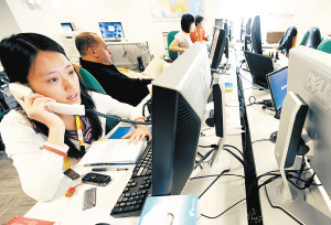 | 北京奥运会开幕在即,参加报道的各国媒体注册记者在北京积极投入奥运会的前期报道。图为7月28日,路透社工作人员在奥运会主新闻中心(MPC)内的办公室忙碌着。 |
