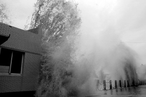 受“凤凰”外围影响 浙江台州掀巨浪 →7月28日,受台风“凤凰”外围影响,浙江省台州市石塘镇鹿头咀狂风掀起巨浪拍打着堤坝。 新华社发