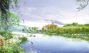 湿地公园效果图和规划图 本报记者 程范淦 摄
