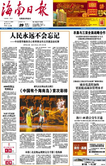 海南日报 头版 001 2008-07-291 2008年07月29日 星期二