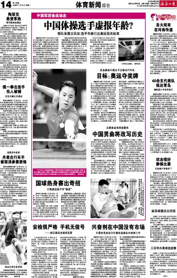 海南日报 体育新闻 014 2008-07-291 2008年07月29日 星期二