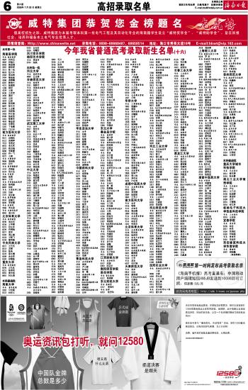 第006版:高招录取名单