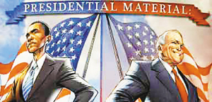 | 漫画:奥巴马(图左)与麦凯恩(图右) |