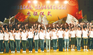 本报海口7月30日讯 (记者吴亮 通讯员李树荣) 北京奥运会、残奥会海南省赛会志愿者今天上午举行出征仪式(见上图,本报记者苏建强摄)。
