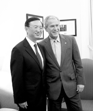 7月29日,美国总统布什(右)在华盛顿白宫会见中国外交部长杨洁篪。 新华社发(美国白宫供图)